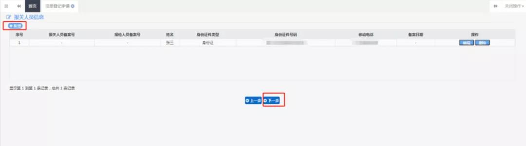 8、需向海關(guān)申請報關(guān)人員備案,則填寫此界面信息,如無需申請,則點擊“下一步”: