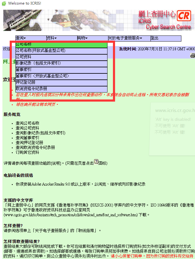 網(wǎng)上查詢香港公司信息流程