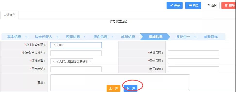 第十六步:聯(lián)系人可選擇法人或者股東。